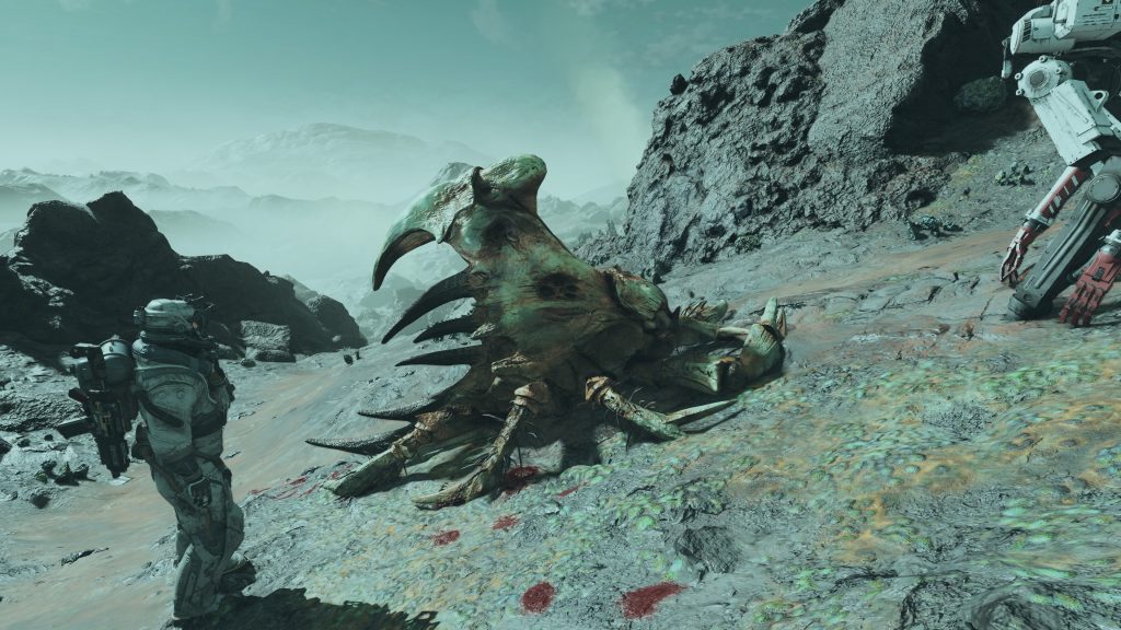 This is mitigated somewhat when you acquire the buggy, which as well as being fast enough to run away from hostile fauna on planets, is also equipped with a far more capable scanner than the handheld device you’re kitted out with. You see, scanning items is a handy way to get experience points and assign upgrades to the skills you’ll need to progress.
