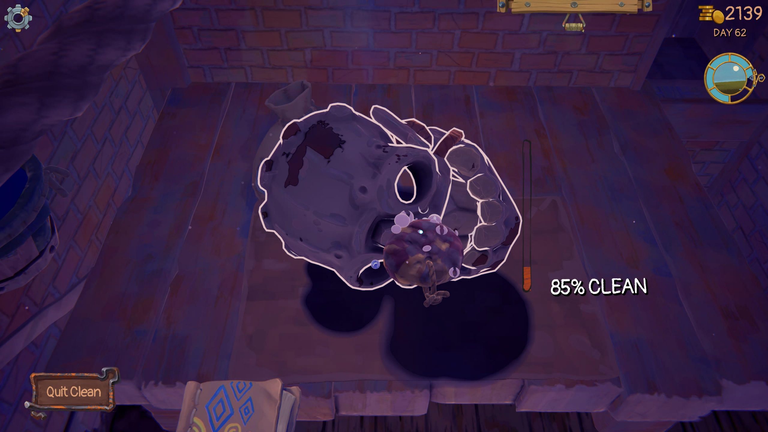 Your next tool is a sponge, which is used to clean the dirt off the item. The left stick rotates the item (as if it were in your inventory in a Resident Evil game), and the right stick moves your cursor (and therefore the sponge). Move the sponge over every bit of dirt, and you’ll now have a clean item.