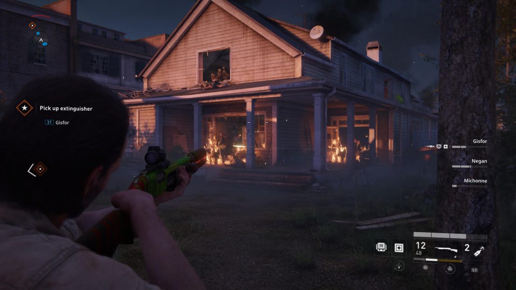 Most interesting though, is the Alexandria Safe Zone. A sort of The Last of Us suburban settlement with streets and houses. However, the area has been overrun, and each house is either full of zombies or on fire. Probably both. So you’ll need to rescue survivors, avoid getting eaten and put out fires. It’s the most interesting of the new chapters and the most challenging.